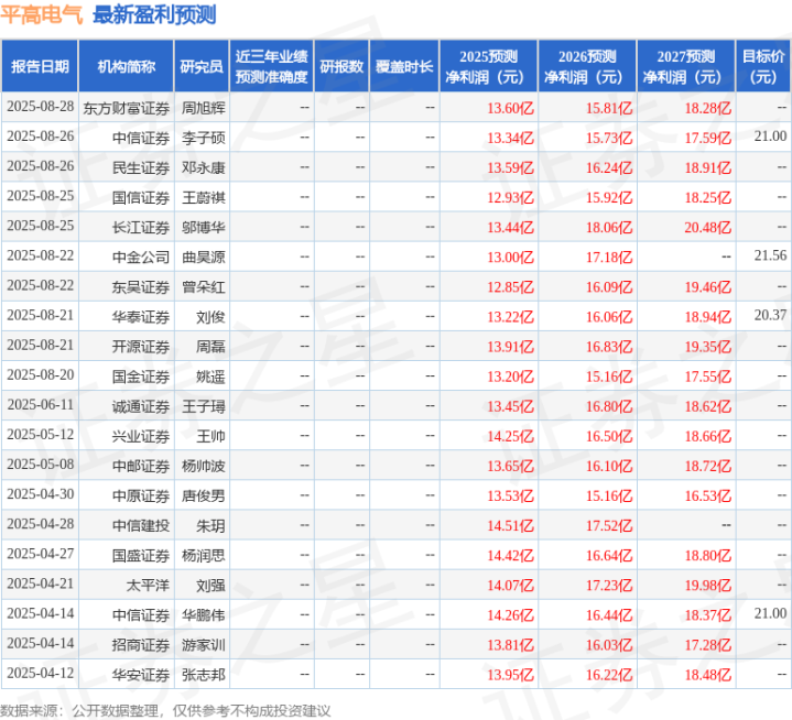 最新盈利预测明细如下: